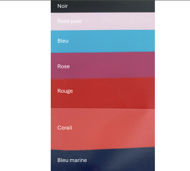 Couleurs: voir la dernière photo pour le detail des couleurs